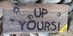 alte Holzlatte als Hinweisschild/Ulkschild "Up Yours"