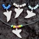 echter Hai Zahn Kette mit Lederband und kleinen Perlen. Zähne sind weiß und ca 1,5- 2 cm groß. Das Lederband ist verstellbar für die Lang- oder für die kurze, enge Halsversion. Die Perlen könne immer farblich verschieden sein. Die Abbildung ist nur ein Musterbeispiel. haifischzahn haizahn