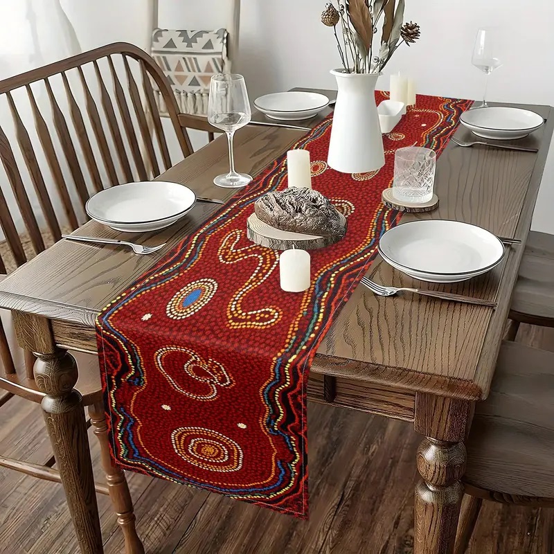 Tischläufer mit aborigines inspirierter, lebendiger Punkte- und Spiraldesign - Polyesterstoff