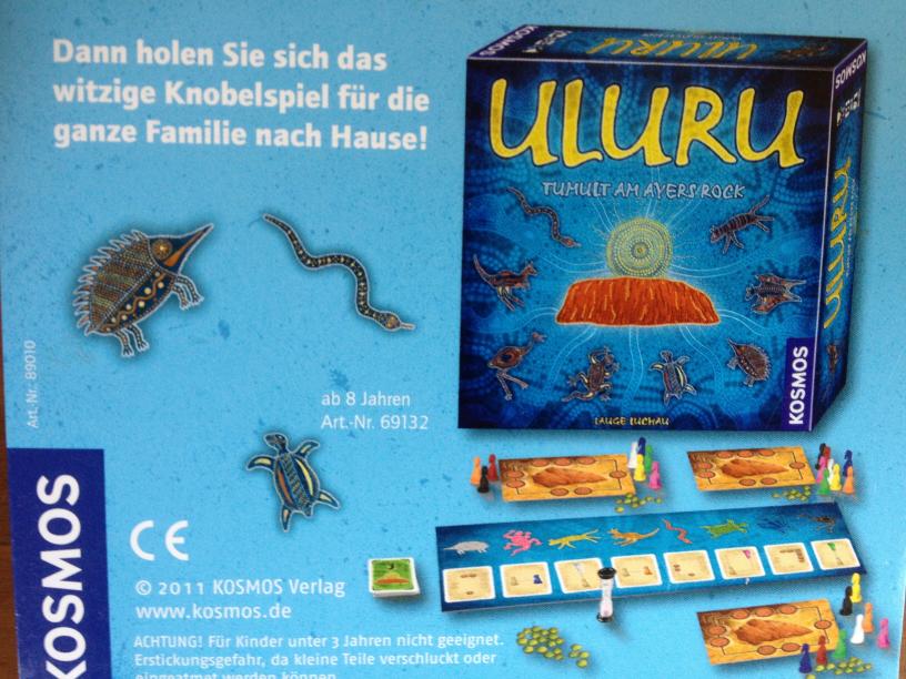 KOSMOS Uluru. Nachts im Schlaf verwandeln sich die Tiere Australiens in Traumvögel und flattern in wildem Reigen rund um den heiligen Berg Uluru. Doch das sorgt für ganz schön viel Trubel, denn alle haben einen ganz speziellen Wunsch: Wo und vor allem neben wem will ich denn gleich landen?! Jetzt heißt es für die Spieler aufgepasst. Bleiben Wünsche der Traumvögel unerfüllt, hagelt es nämlich Minuspunkte. Sobald die Sonne aufgeht, wird abgerechnet und der Spieler mit den wenigsten Minuspunkten gewinnt! Für 1-5 Spieler ab 8 Jahren, Spieldauer ca. 20-30 Minuten.