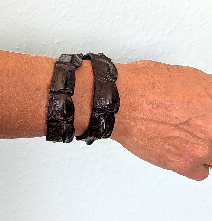 Arband Streifen - Material 100% Krokodilleder, Druckknopfverschluss. Gesamt 42cm lang, breit ca 2cm zwischen den Dr Knöpfen 39cm