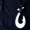 Aus Muschel gefertigt, jeder ist ein Einzelstück Länge 5cm. Bone Carving mit langem Lederband. hei matau